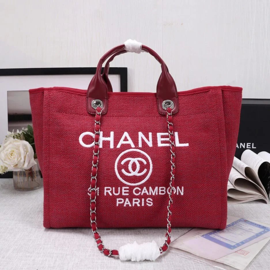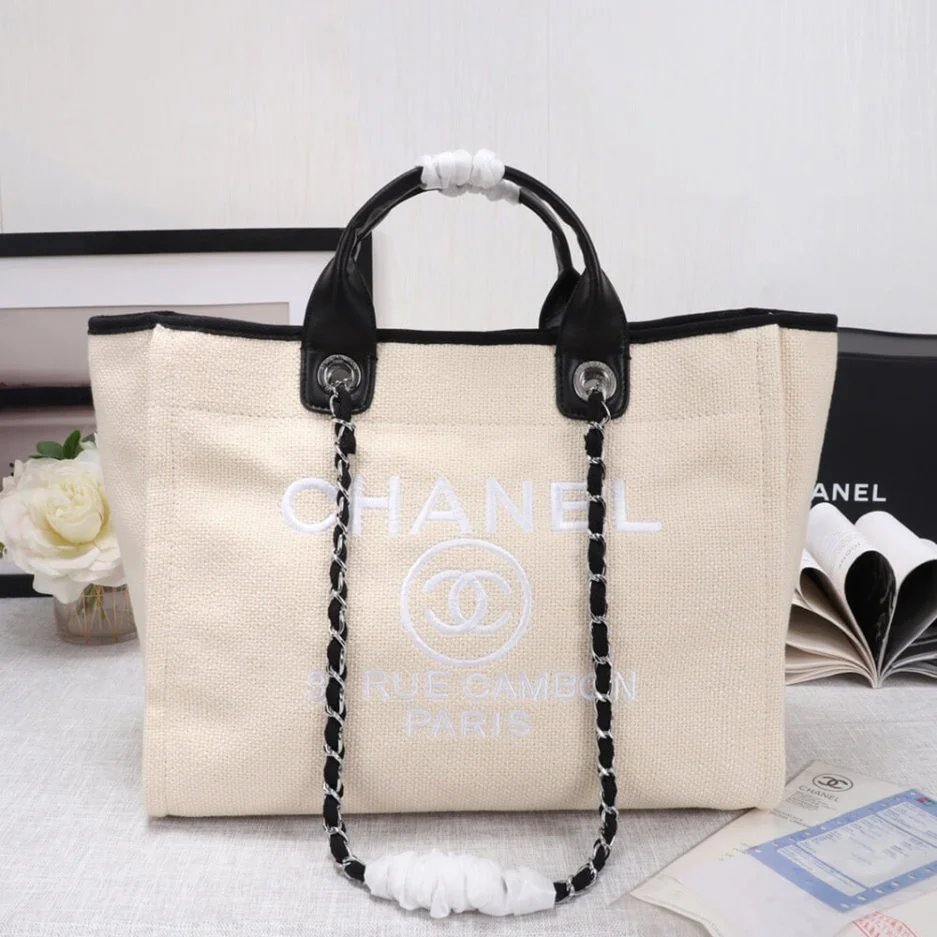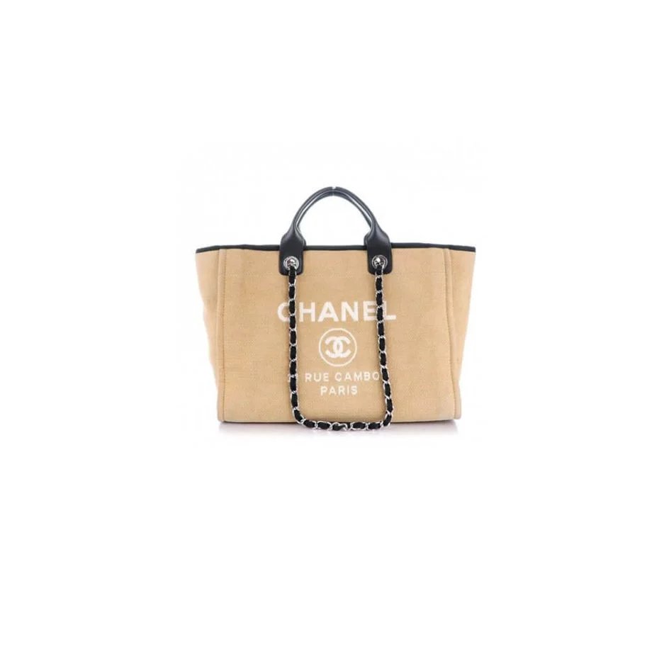 CHANEL Woven Straw Raffia Striped Medium Deauville Tote