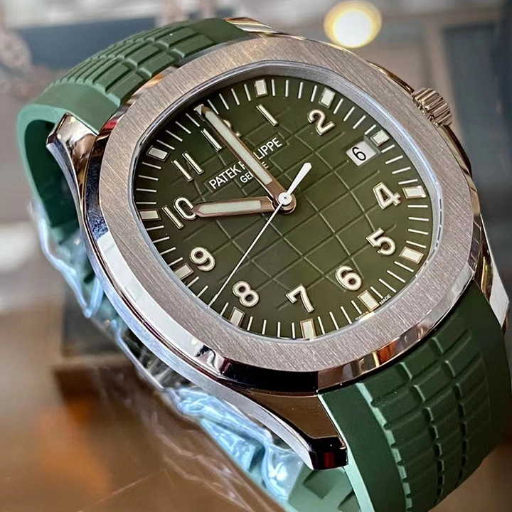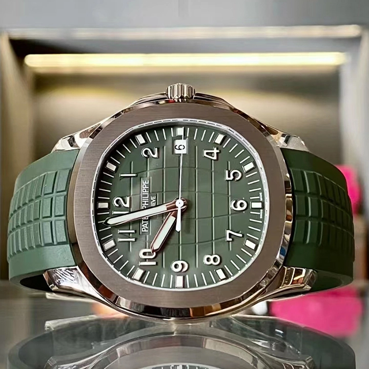 White gold “JUMBO” model in new khaki greenThe Aquanaut white gold men’s watch “Jumbo” (case diameter 42.2 mm) is the representative of modern sports fashion, and the new khaki green design shows a youthful and dynamic style. The bold color palette represents the spirit of exploration that longs for the distance, and the rounded octagonal case and bezel combine polish with satin decoration.