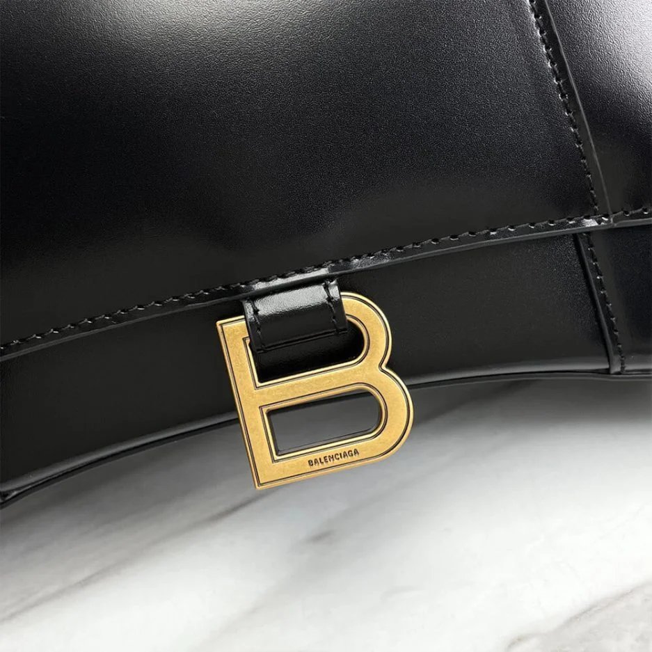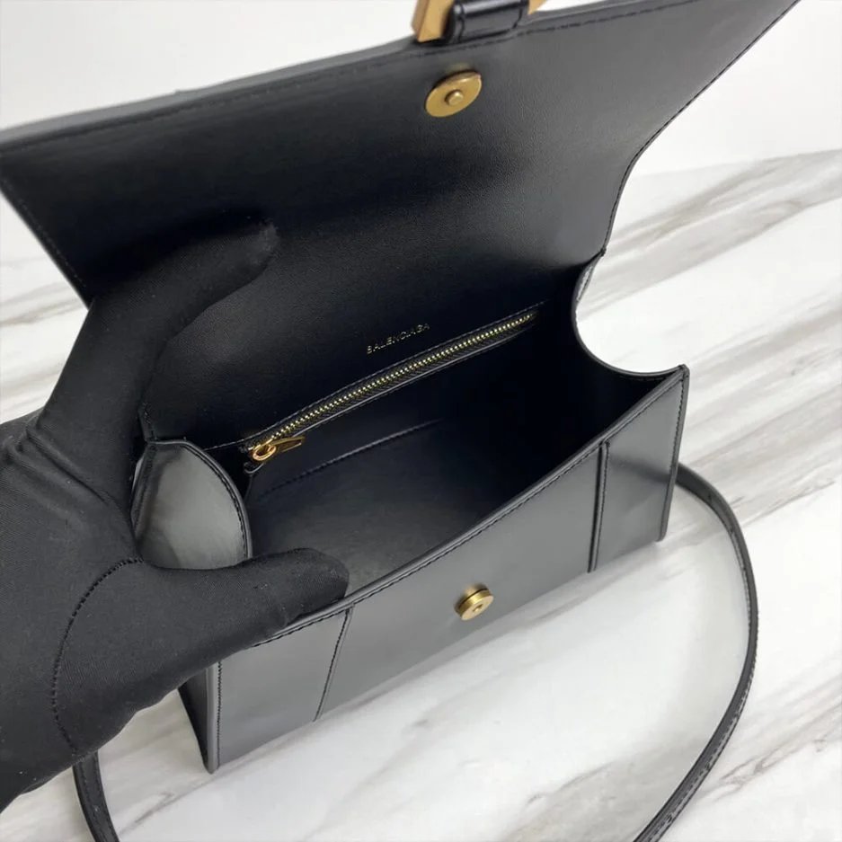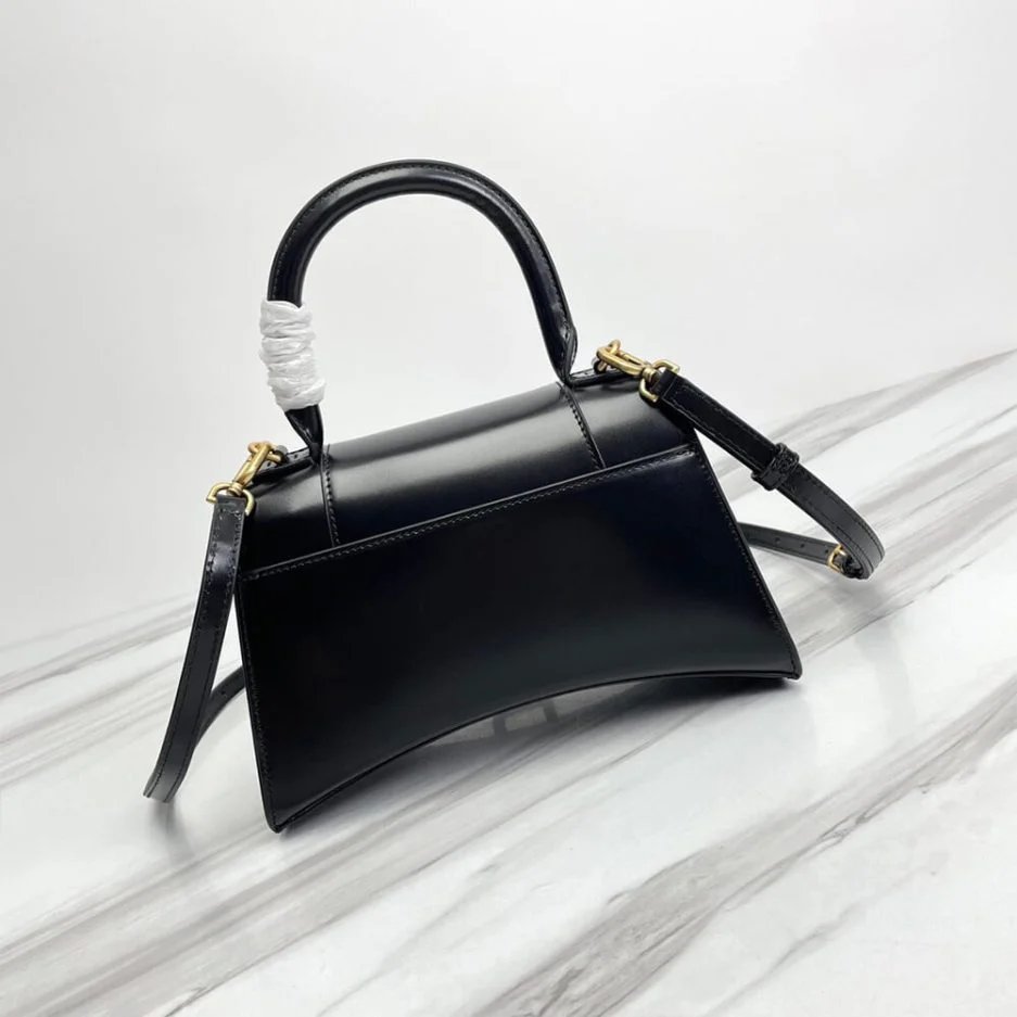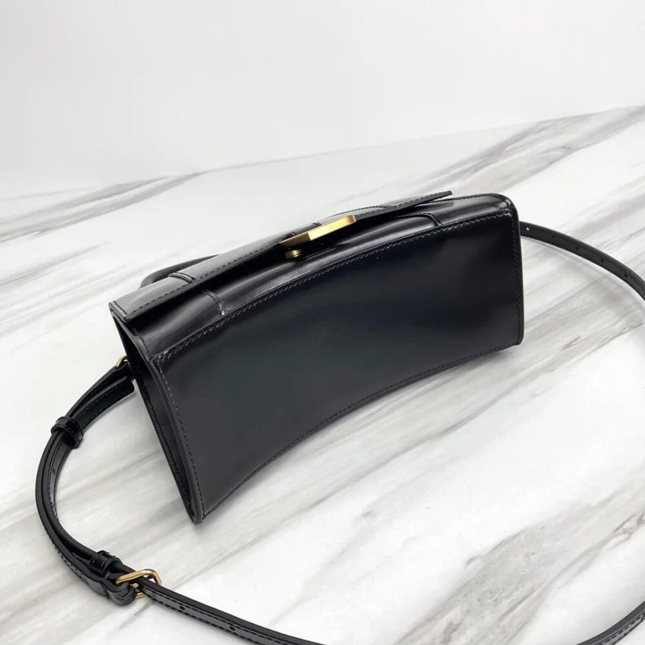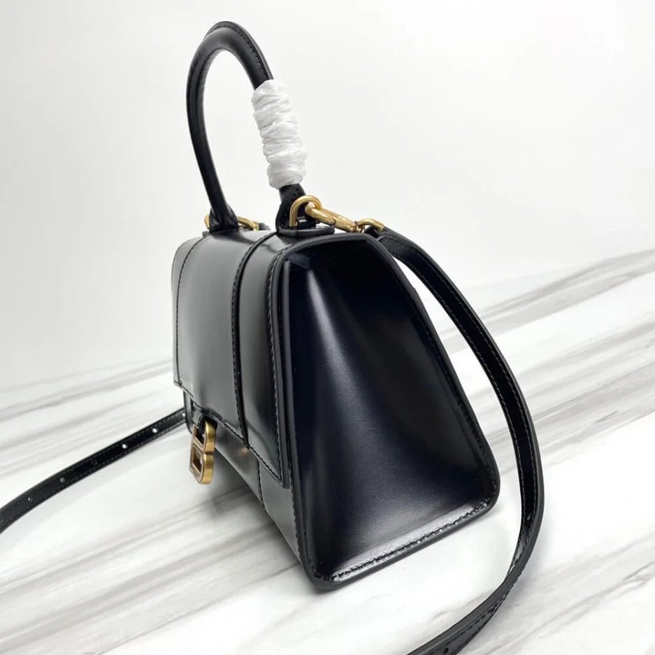 Hourglass Small Handbag in black shiny box calfskin
