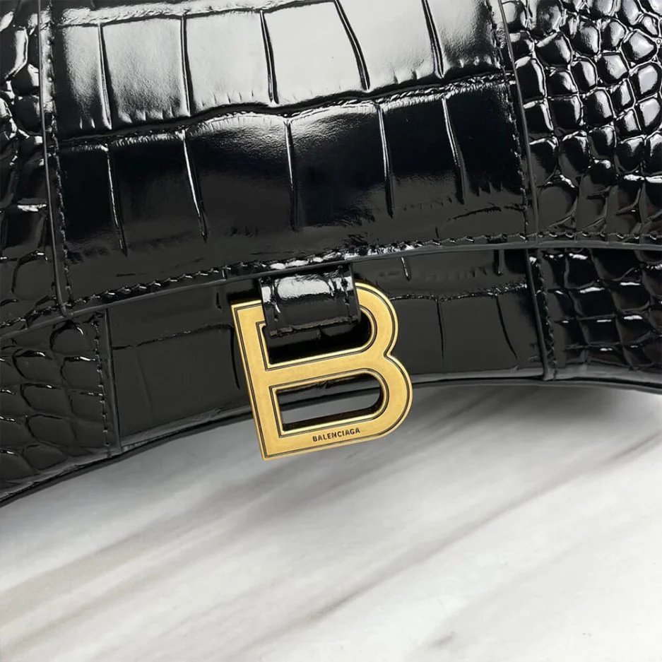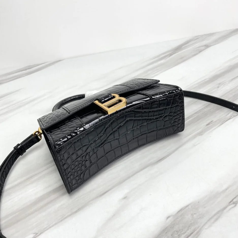 Hourglass XS Handbag in black crocodile embossed calfskin