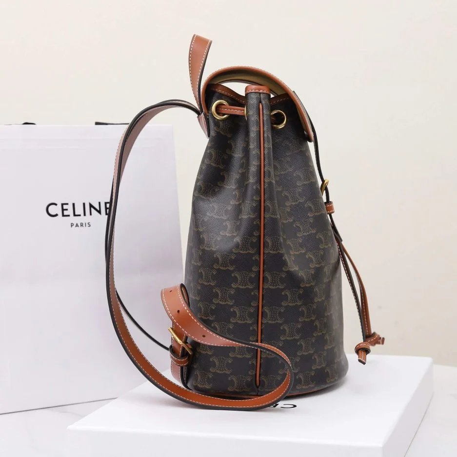 CELINE FOLCO Logo Print Calfskin Medium Backpack