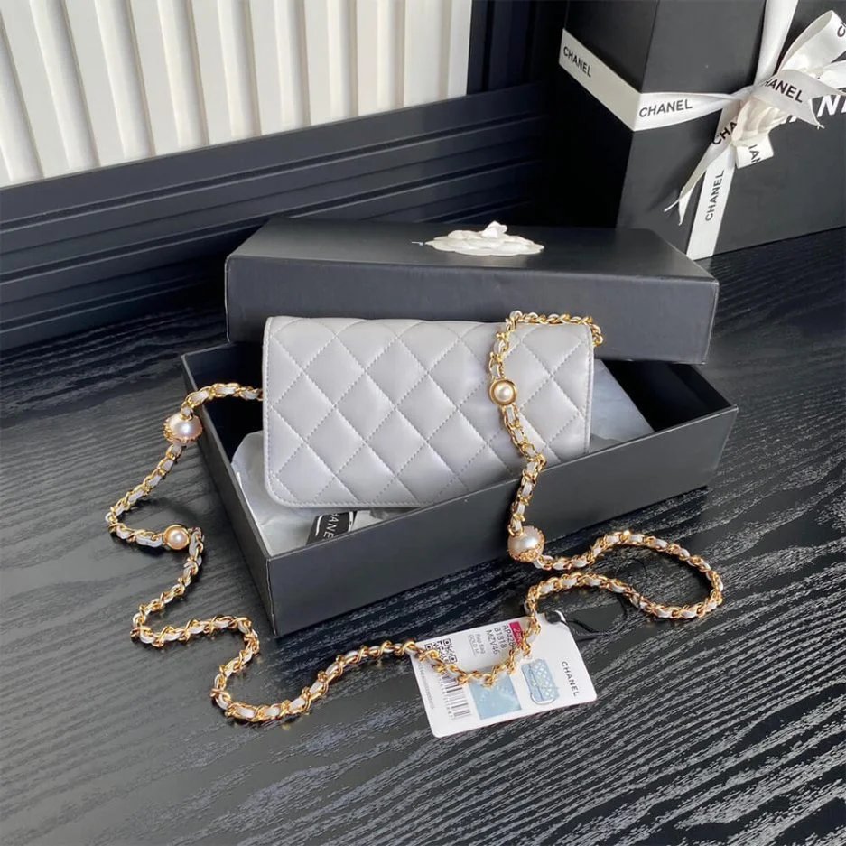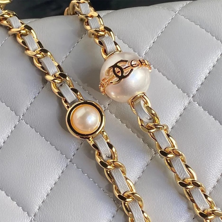 Shiny Lambskin, Imitation Pearls & Gold-Tone Metal