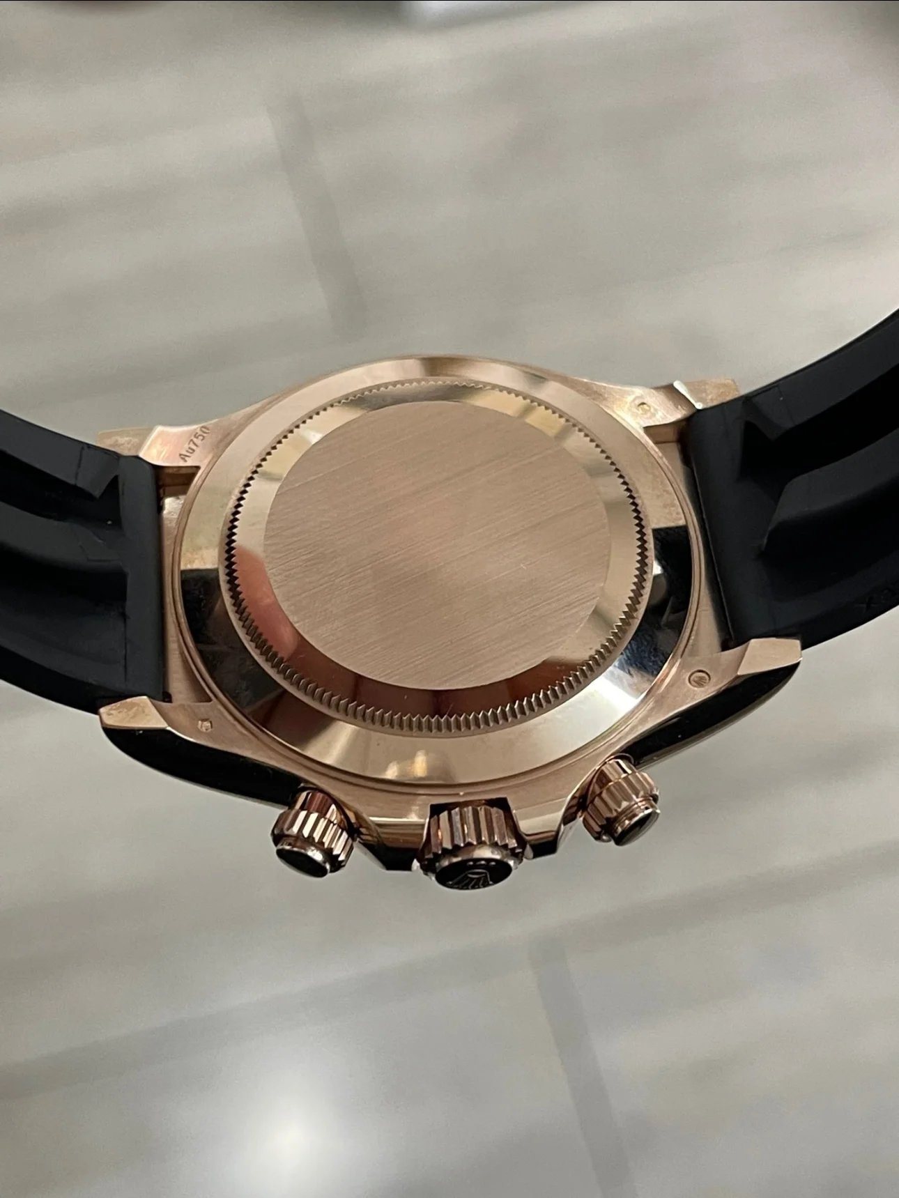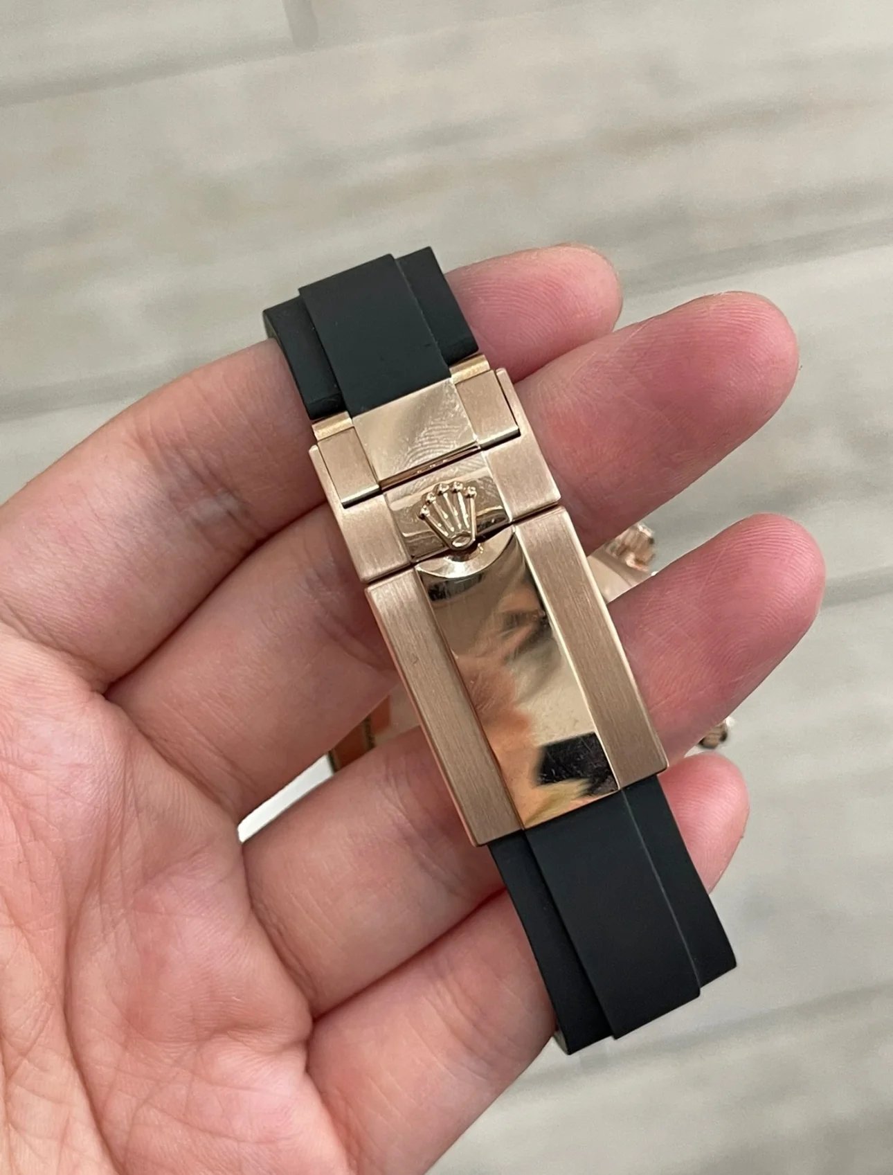 All 18K gold Cosmograph Daytona models with a Cerachrom bezel are paired with an Oysterflex bracelet. This innovative bracelet, developed and patented by Rolex, combines the robustness of a metal bracelet with the comfort of a rubber strap.