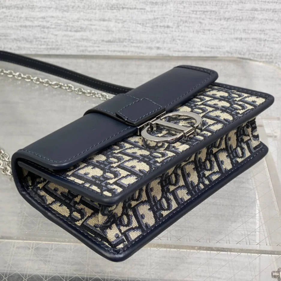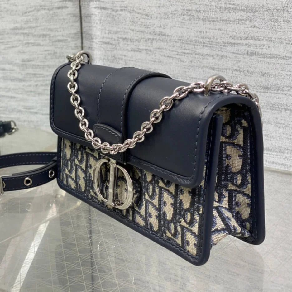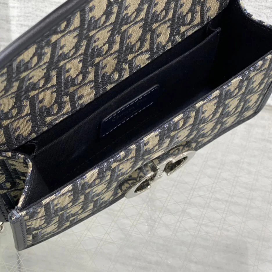 Blue Dior Oblique Jacquard and Smooth Calfskin
