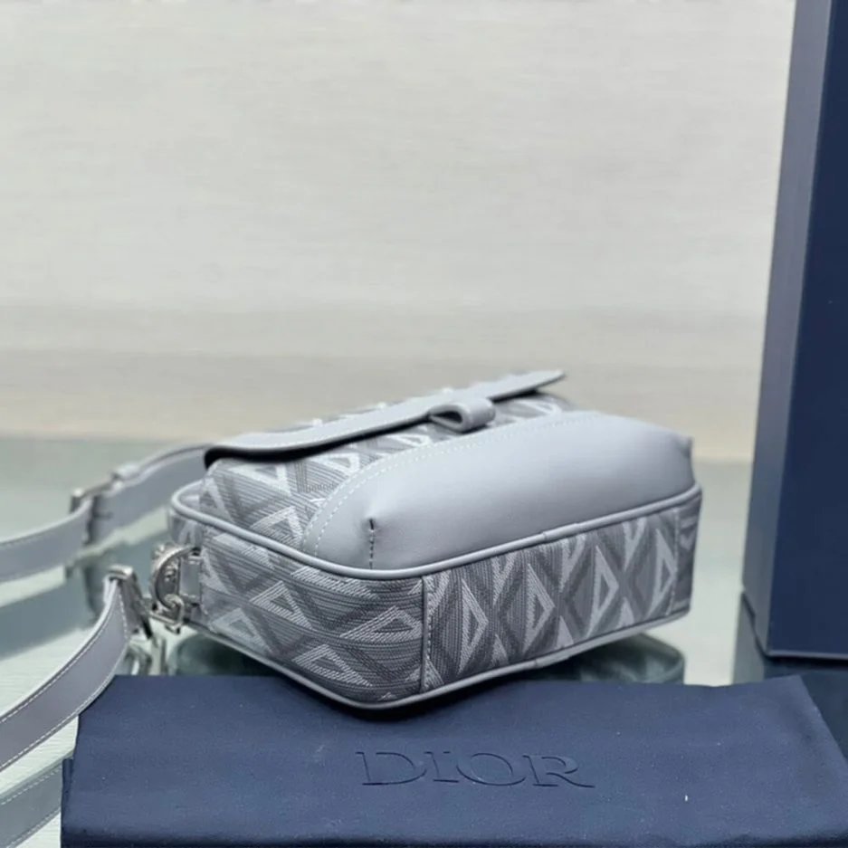 Dior gray CD Diamond canvas and smooth calfskin