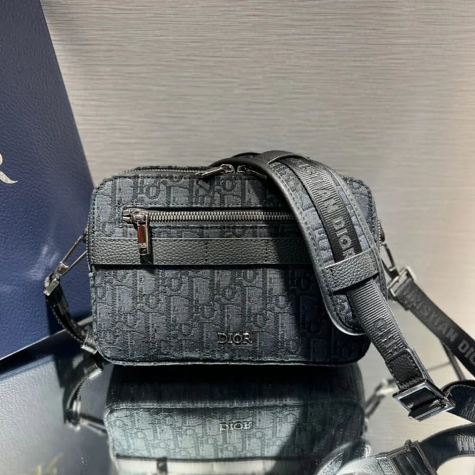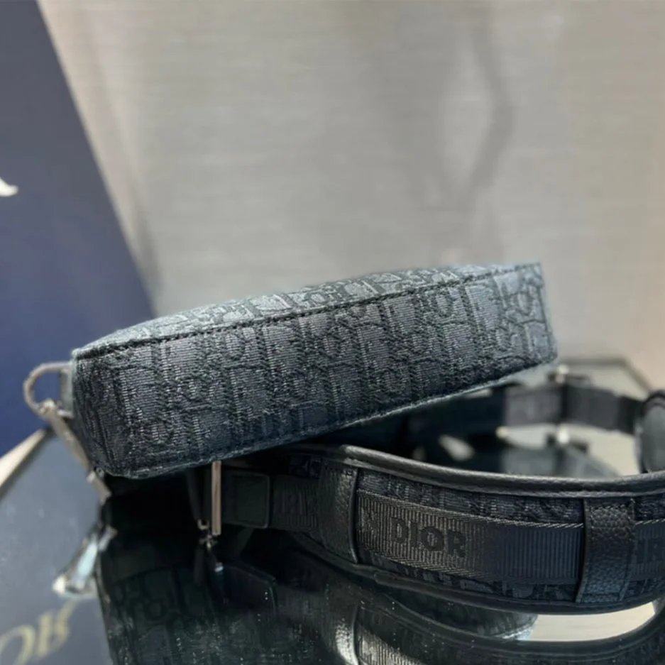 Calfskin and nylon jacquard adjustable and removable ‘CHRISTIAN DIOR’ shoulder strap