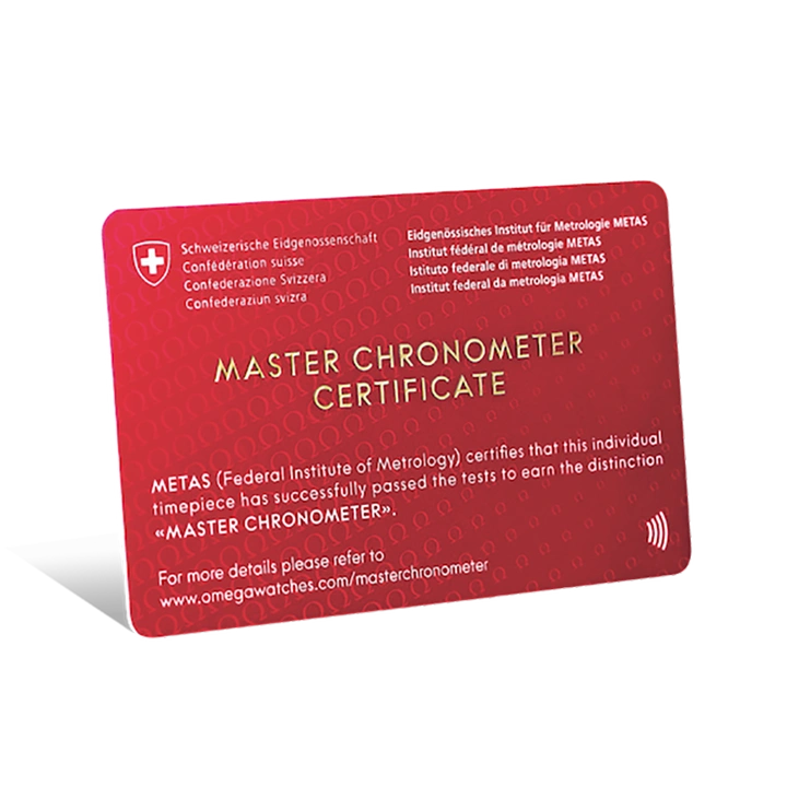 The watch is presented on an intergrated black rubber strap and is driven by the OMEGA Master Chronometer Calibre 8800, which can be seen through the sapphire-crystal on the wave-edged caseback.
