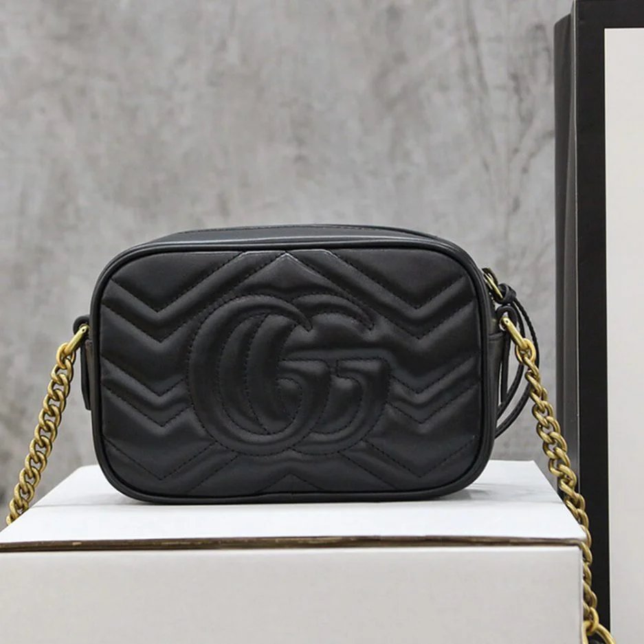 Black matelasse chevron leather with GG on the back