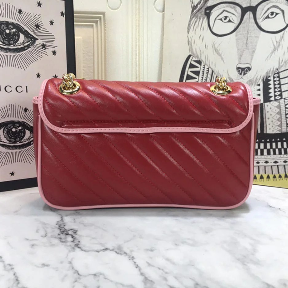 Sliding chain strap can be worn as a shoulder strap with 22?? drop, as a top handle with 12?? drop or as a cross body bag.