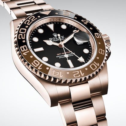 THE OYSTER PERPETUAL GMT-MASTER II IN 18 CT EVEROSE GOLD WITH AN OYSTER BRACELET.