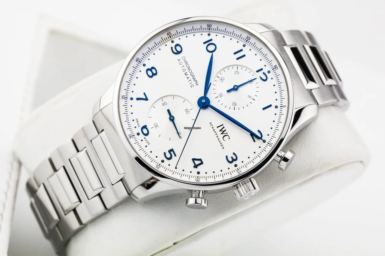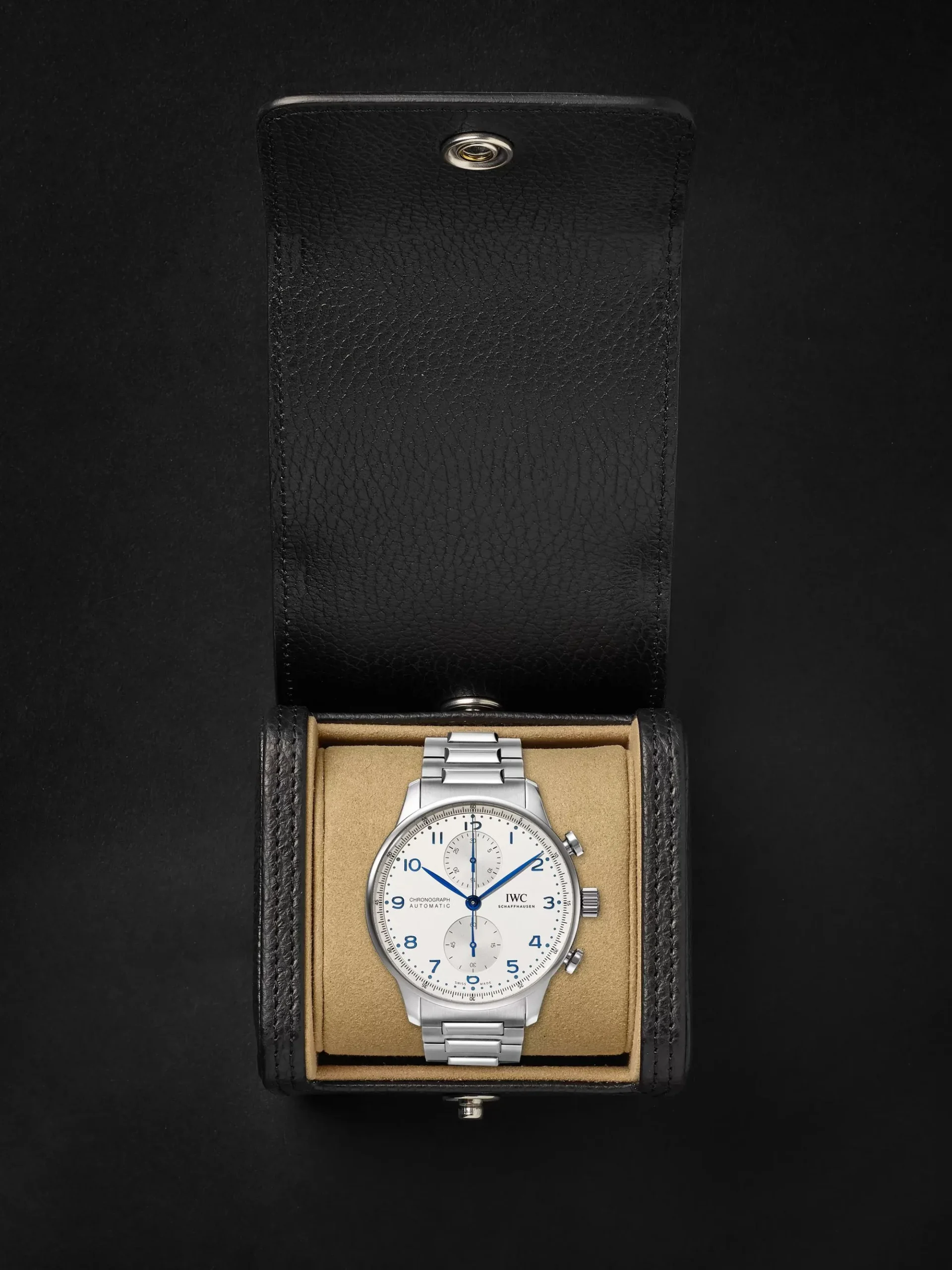 Inheriting the resolute and sporty style introduced by IWC Schaffhausen more than two decades ago, this IWC Portugieser men’s chronograph is now available for the first time with a stainless steel bracelet for a more refined look suitable for formal attire.