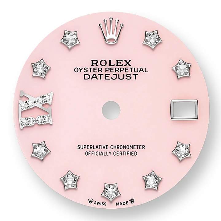 The light reflections on the case sides and lugs highlight the elegant profile of the?28 mm Oyster case, which is fitted with a diamond-set bezel. Rolex’s classic feminine watch, the Lady-Datejust is in the lineage of the Datejust, the emblematic model that has been a byword for style and accurate timekeeping.