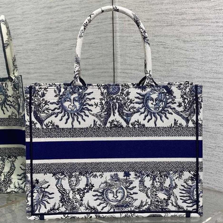 White and Navy Blue Toile de Jouy Soleil Embroidery (36 x 27.5 x 16.5 cm)