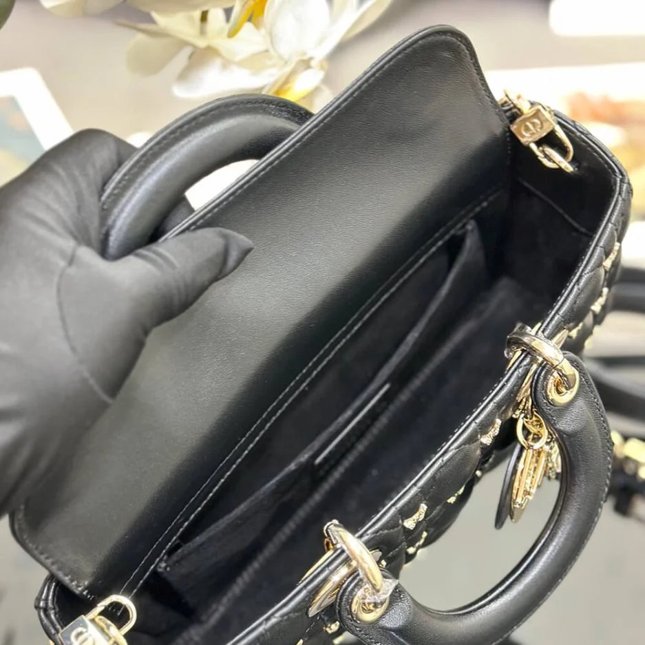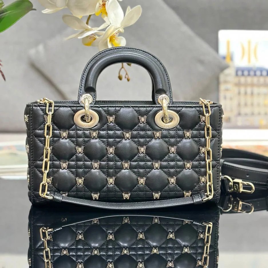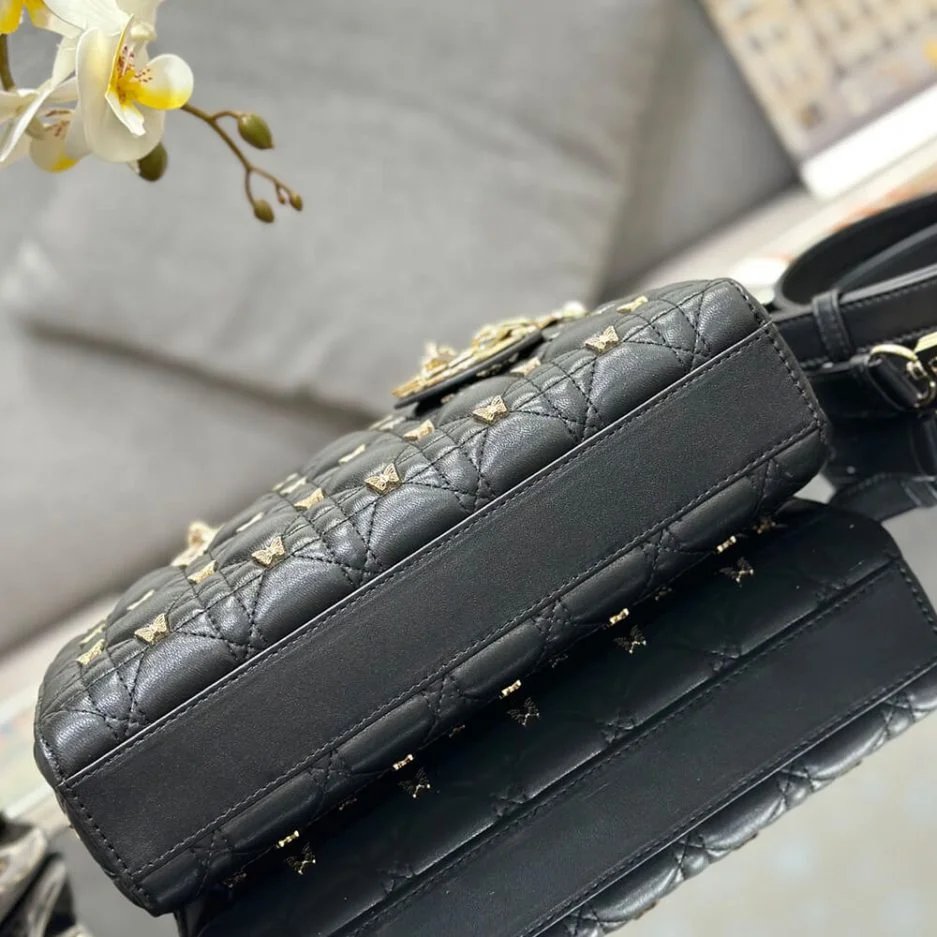 Black Cannage Lambskin with Gold-Finish Butterfly Studs