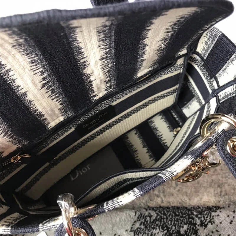 The Lady D-Lite handbag combines classic elegance with the modern feel of the brand. This style brings a new interpretation of the bayadere theme pattern this season. It is decorated with a full-scale multi-color mixed-color effect D-Stripes pattern embroidery, revealing a contemporary atmosphere, and the front is decorated with the “Christian Dior” logo. The thick gold-tone metal “D.I.O.R.” pendant is infused with pattern style. The medium-sized Lady D-Lite handbag has a wide, detachable double-sided embroidered shoulder strap, which can be carried, shouldered or slanted.