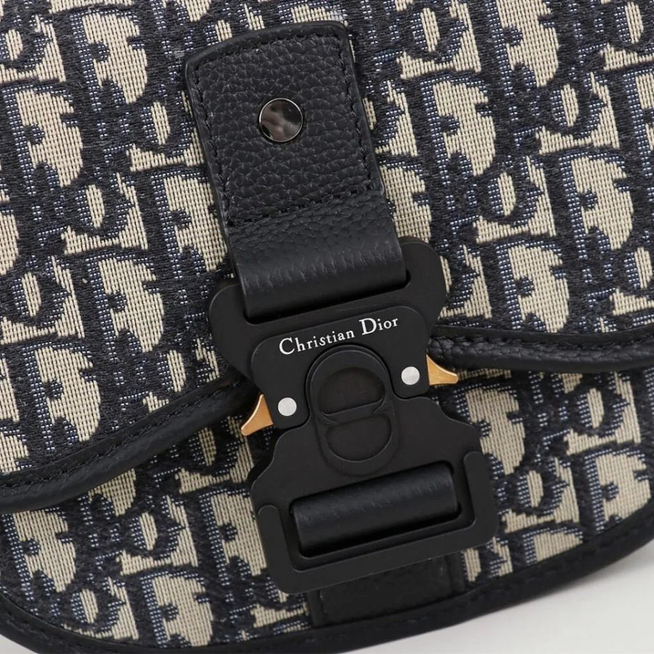 Aluminum buckle with Christian Dior signature and CD letters on flap closure