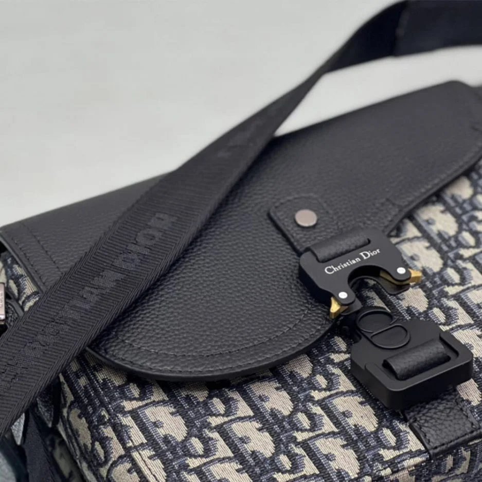 Adjustable leather and nylon jacquard Christian Dior shoulder strap