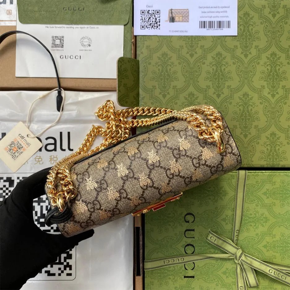 Beige/ebony GG Supreme canvas with gold bees print, a material with low environmental impact