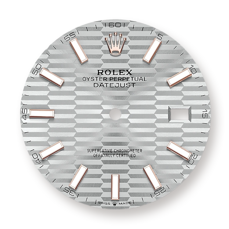 THIS OYSTER PERPETUAL DATEJUST 41 IN OYSTERSTEEL AND EVEROSE GOLD FEATURES A SILVER, FLUTED-MOTIF DIAL AND A JUBILEE BRACELET.