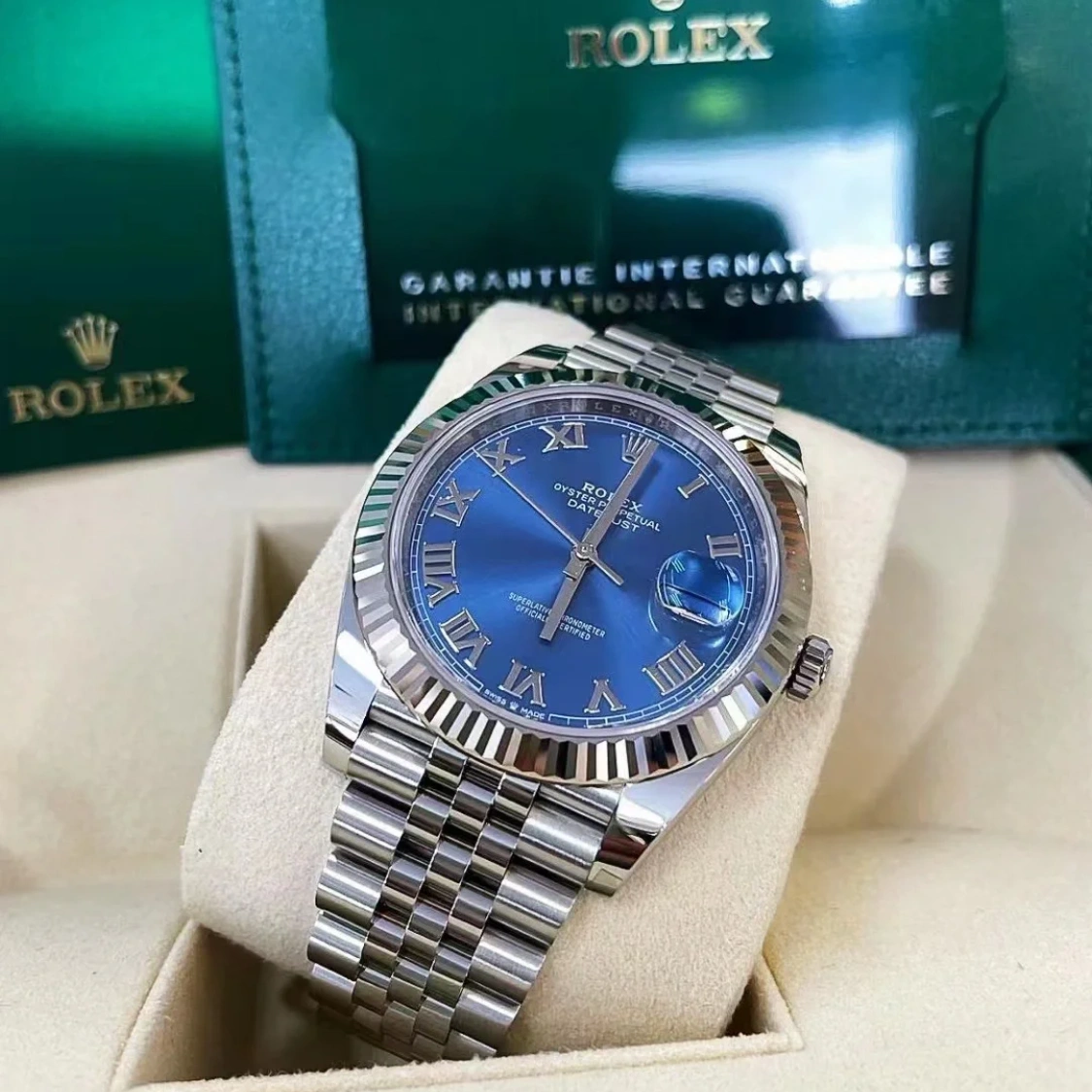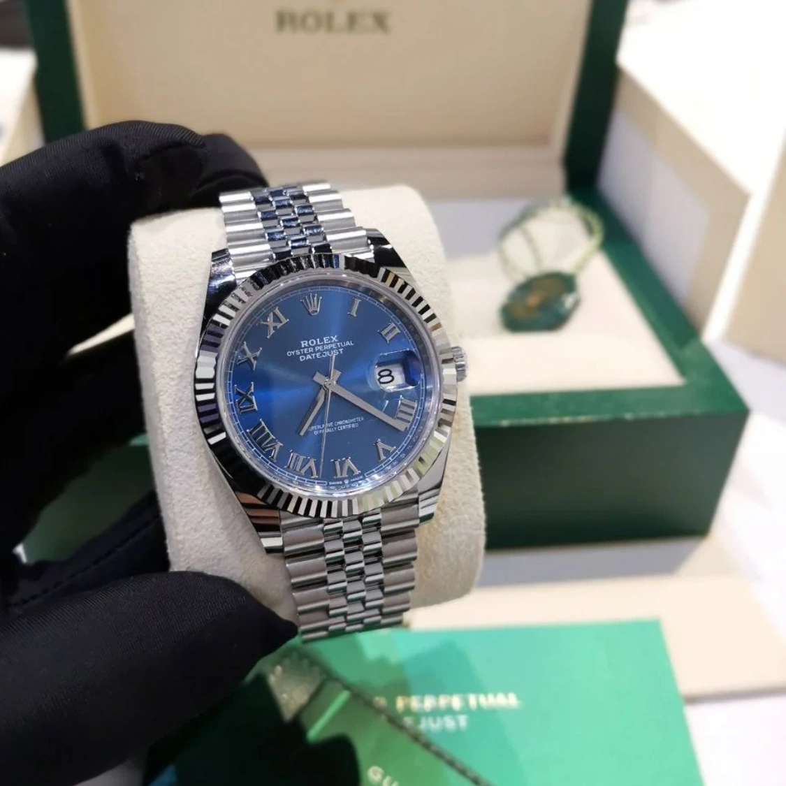 THIS OYSTER PERPETUAL DATEJUST 41 IN OYSTERSTEEL AND WHITE GOLD FEATURES AN AZZURRO-BLUE DIAL AND A JUBILEE BRACELET.