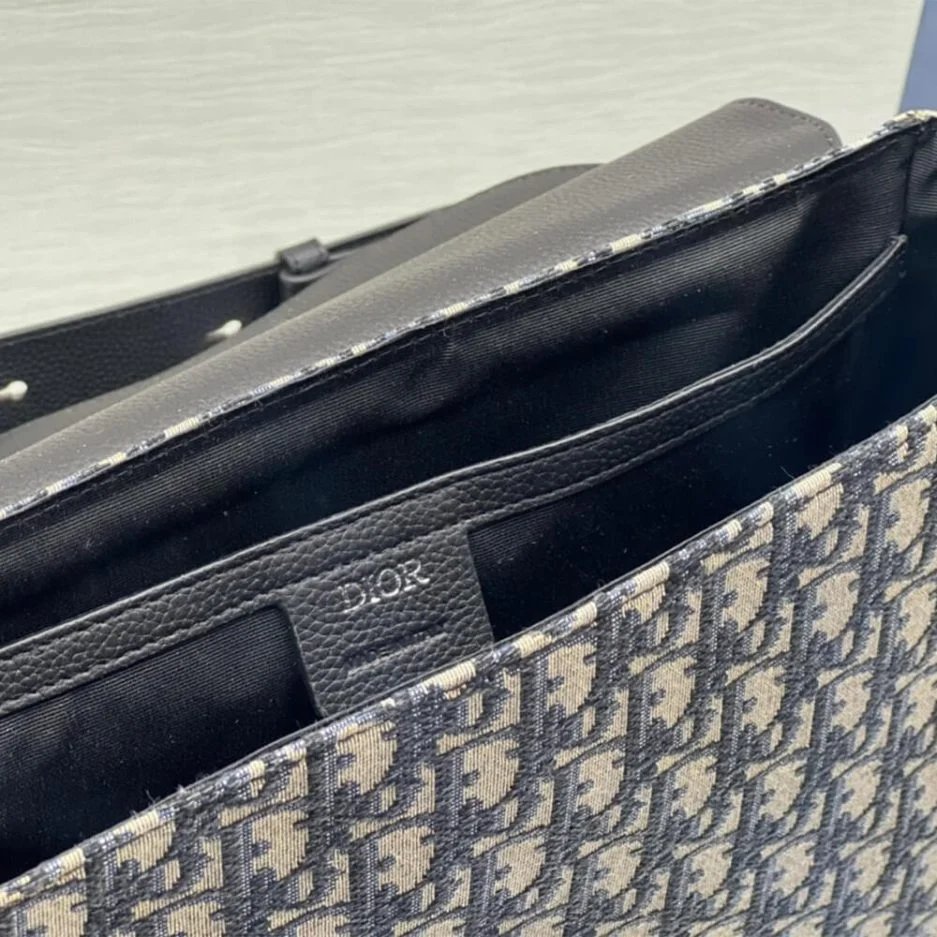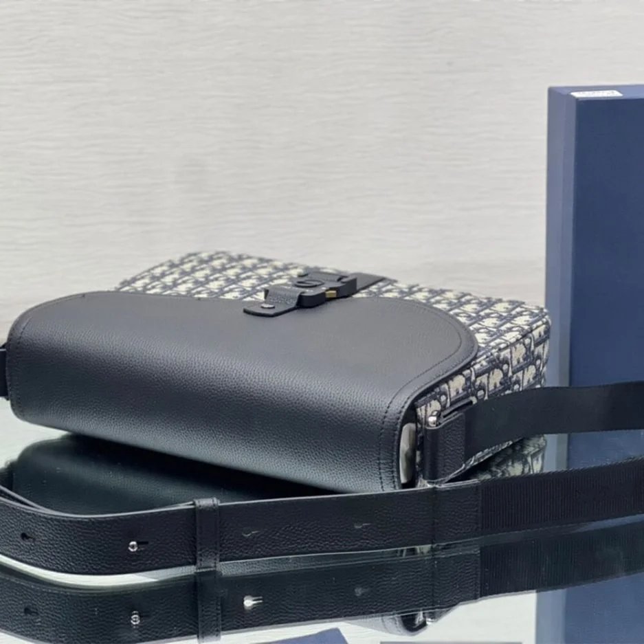 Aluminum buckle with Christian Dior signature and CD initials on flap closure