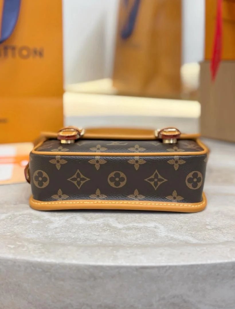 The Satchel Messenger bag in Monogram canvas with natural cowhide-leather trim draws inspiration from the House’s iconic Gibecière bag from the 1990s. With its flap opening and buckle closure, two front pockets, and a padded interior pocket for a laptop, it’s the perfect everyday bag. The heritage design adds a vintage vibe to any look.