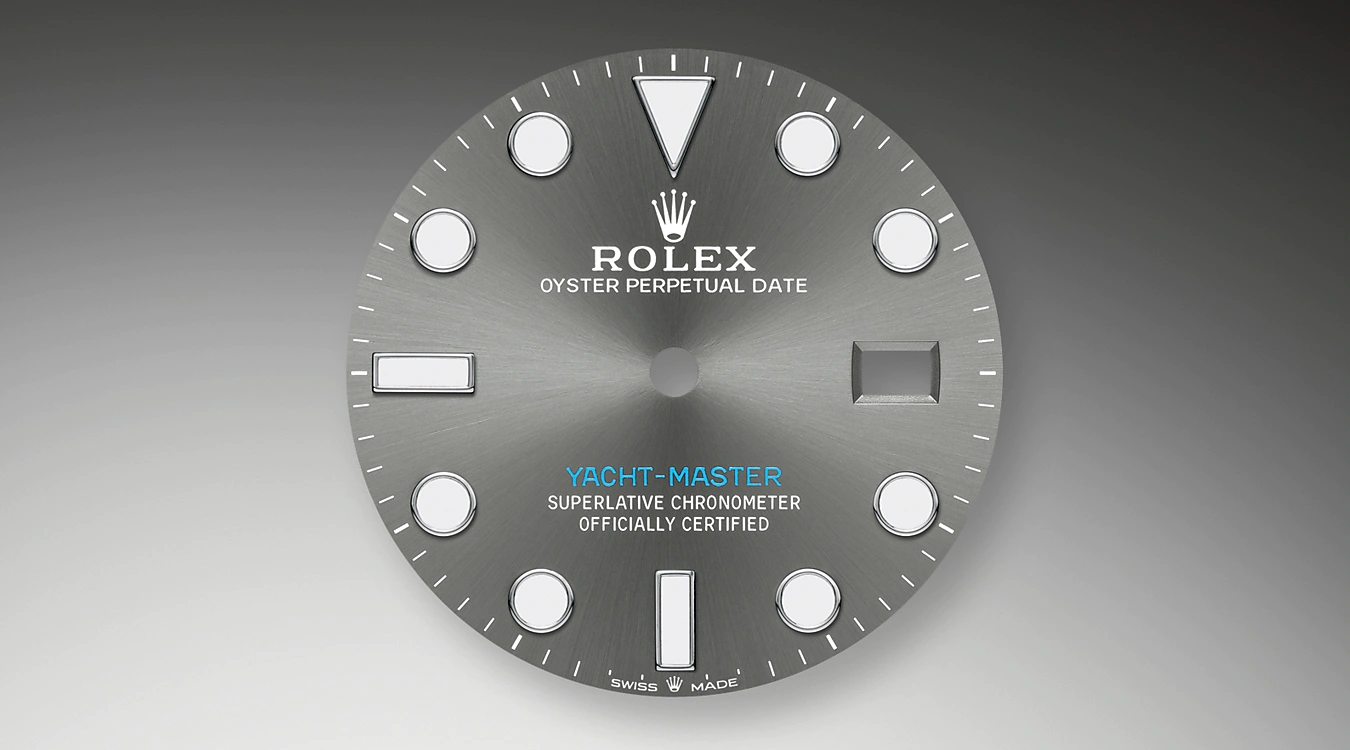 The Yacht-Master??s bidirectional rotatable 60-minute graduated bezel is made of precious materials. The raised polished numerals and graduations stand out clearly against a matt, sand-blasted background. This functional bezel ?C which allows the wearer to calculate, for example, the sailing time between two buoys ?C is also a key component in the model??s distinctive visual identity.